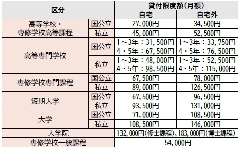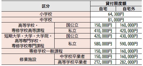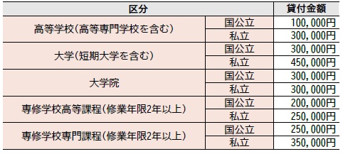 (2)修学資金(無利子):高校や大学などでの修学に必要な経費