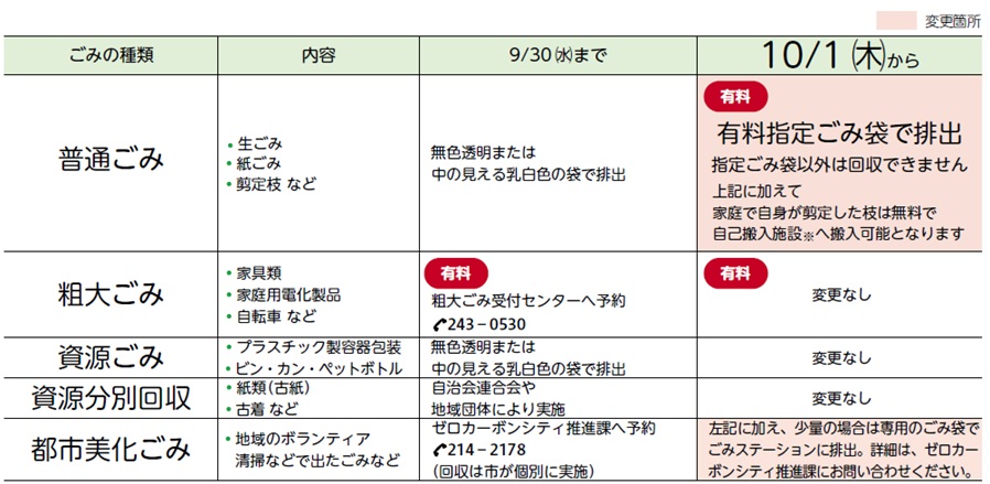 ■ごみの減量・資源化を推進し、ごみ処理施設の更新など将来世代の負担を軽減するため、10/1(木)から普通ごみの処理を有料化します